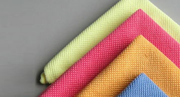 An efficient cleaning cloth specifically designed with a unique combination of microfibers and knit construction to provide excellent dust, oil and water pickup with minimal linting. May be used dry or damp, with or without cleaning chemicals, on a wide variety of substrates including delicate surfaces.